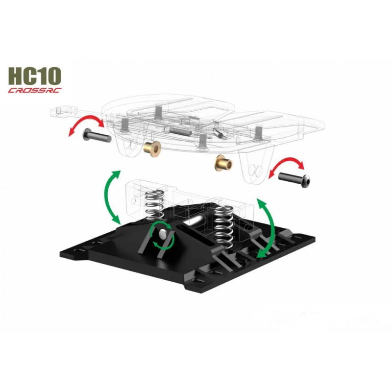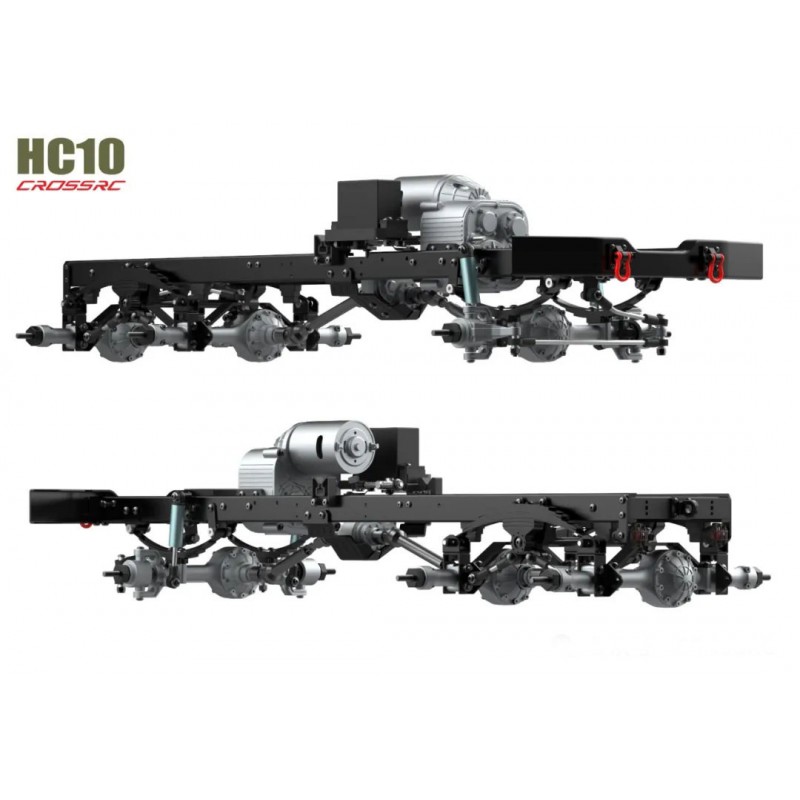 Le HC10 adopte la structure trapézoïdale du vrai véhicule. Le châssis est fait d’un alliage d’aluminium de haute qualité de 2 mm qui a été traité et formé. La barre avant est en acier embouti. L’ensemble de la structure est léger et solide.