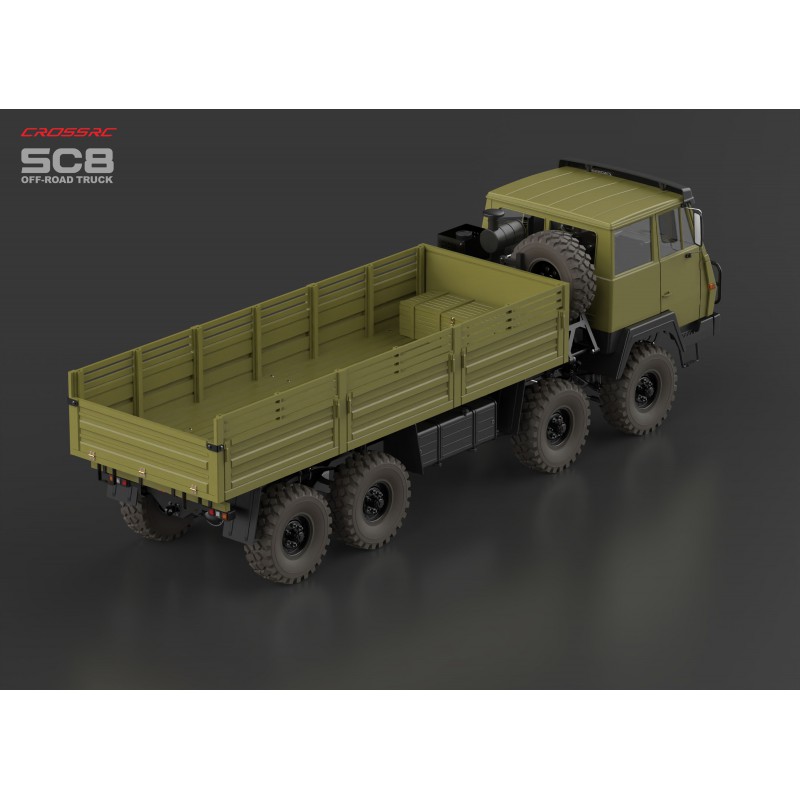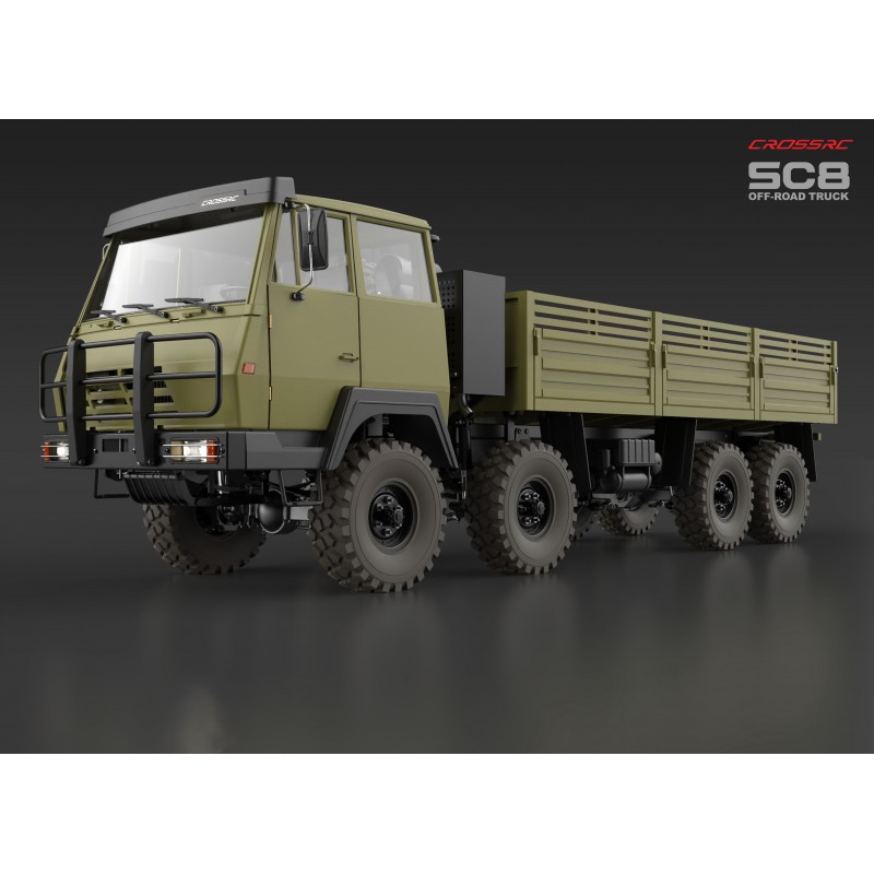 Le SC8 représente le summum de la gamme de poids lourds de CROSSRC. Évoluant d’un système de transmission intégrale permanente 6×6 à un système 8×8, il offre une avancée révolutionnaire en matière de maîtrise du terrain et de capacité de charge. Inspiré des poids lourds tout-terrain classiques, il est conçu pour offrir aux passionnés l’expérience de pilotage mécanique la plus extrême qui soit.