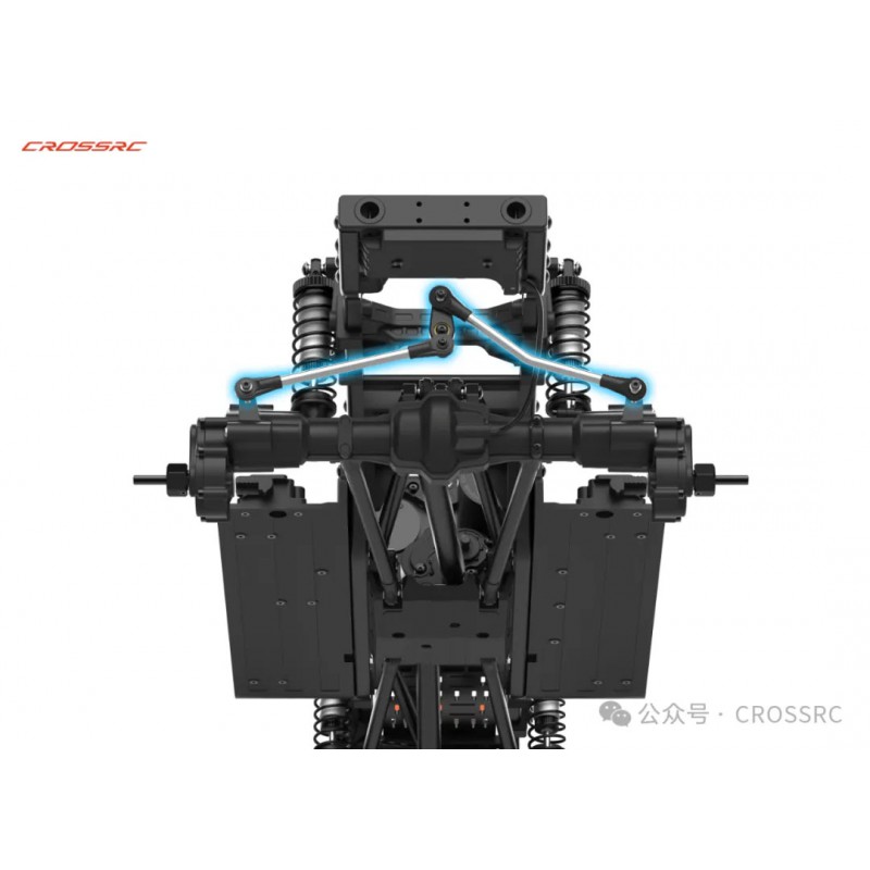 3, combinaison solide de pont de porte à passage inversé, angle de braquage maximal de 5 degrés selon Ackerman, angle de braquage principal vers l’intérieur de 8 degrés, inclinaison maximale vers l’arrière de 8 degrés. Le gouvernail arrière offre une meilleure trace, ce qui apporte une plus grande stabilité et une maniabilité accrue pour les croisements à grande vitesse. Grâce à l’angle supérieur de l’arbre d’entrée et à l’angle spécial du point de suspension, la transmission est fluide et l’effet de l’arbre est réduit au minimum. Équipé de la première bielle arrière équilibrée de CROSSRC sur ce modèle, le contrôle est plus précis et plus délicat.